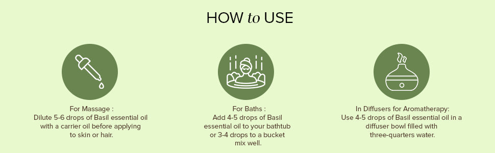 Basil essential oil is highly concentrated and should not be directly applied to skin or hair. It can be diluted with a carrier oil or base oil by adding 5-6 drops of the essential oil and blending well.