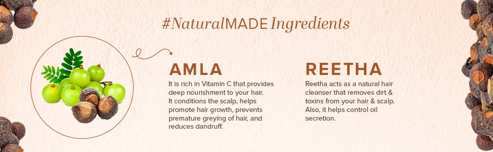 Introducing our Amla & Reetha Hair Cleanser, formulated with the goodness of Reetha and Amla. This gentle herbal cleanser reduces hair fall, adds strength and volume, prevents premature graying, promotes hair growth, and addresses dandruff. Amla, known for its astringent, antibacterial, and antioxidant qualities, is a natural source of fatty acids, Vitamin C, Iron, and Calcium, effectively combating scalp irritations and infections while leaving your hair healthy and nourished.