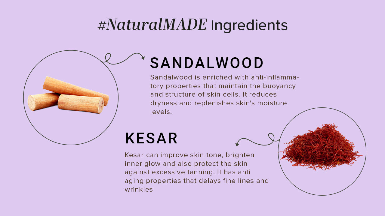 Sandalwood & Kesar Moisturizer comes with the goodness of Sandalwood & Kesar along with other rare and certified components like, Sesame oil, Wheatgerm oil, coconut oil etc. Makes for this gentle yet powerful herbal moisturizer which can be used on a daily basis. The essential goodness of the ingredients caters to the proper nourishment of the skin while hydrating it and nourishing it to the core. The daily use of this light weight moisturizer can help brighten the complexion in an effective way by doing away with marks, spots and blemishes. It repairs skin dryness, dullness & damage owing to its healing properties.