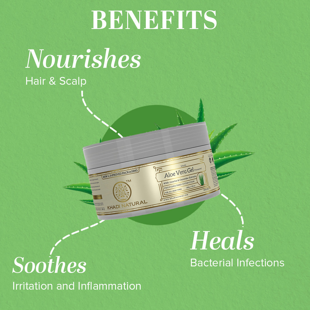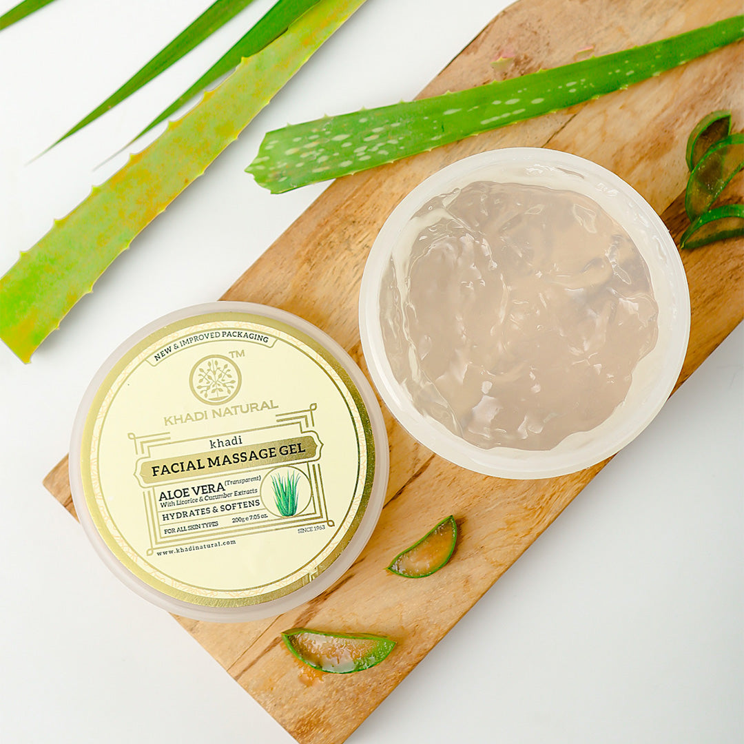Aloe Vera facial massage gel has healing and moisturizing properties and is best to provide the dry skin with the much needed hydration. Exfoliating the skin is important to get rid of dead cells and clear pores of grime. Its an all-natural and gentle way to exfoliate your skin. Aloe vera is non-oily and penetrates the skin layers providing deep hydration from within and gives smooth, silky soft skin.