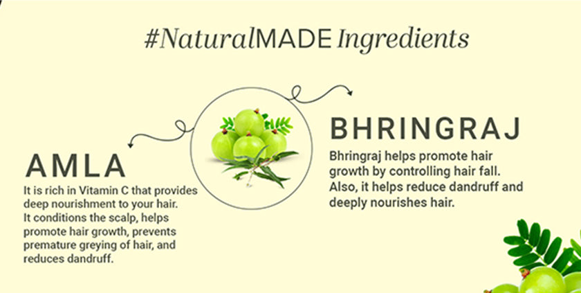 Purified Water, Amla Ext (Emblica Offiinalis),Fenugreek Ext (Trigonella foenum-graecum) Bhringraj Ext(Eclipta alba), Brahmi Ext (Bacopa monnieri) Reetha Ext(Sapindus mukorossi), Vitamin E (Tocopheryl Acetate),Glycerine, G.H.P.T.C. (Guar hydoxypropyl trimonium chloride),Almond oil (Prunus amygdalus dulcis), Polyquaternium-10, (Quaternised hydroxy), Sodium PCA (Sodium Pyroglutamic Acid), Cetyl Alcohol (Natural) (Cetyl alcohol), Stearyl Alcohol,Shikakai Ext (Acacia concinna), Olive Oil (Olea Europaea), Wheat germ oil (Triticum vulgare), Glycride mono stearate (Natural) (Glyceryl monostearate), Fragrance (Essential