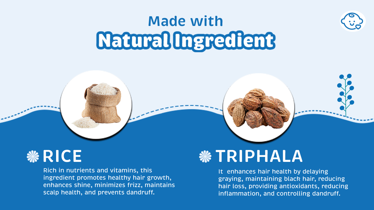 Hello there, my name is Khadi Natural Baby Care Gentle Cleanser. Iโm as gentle as your baby and as natural as your love for your baby. You can rest assured that I wonโt let your baby cry and provide deep cleaning at the same time. My all-natural formula provides your baby the tender care you seek in every product. Don't you know I won't let you down? Rice and Triphala are my major ingredients sourced naturally from plants. I'm made to thoroughly clean while preserving the moisture in your baby's scalp. I adore kids and am conscious of the need to give their delicate scalps extra attention.