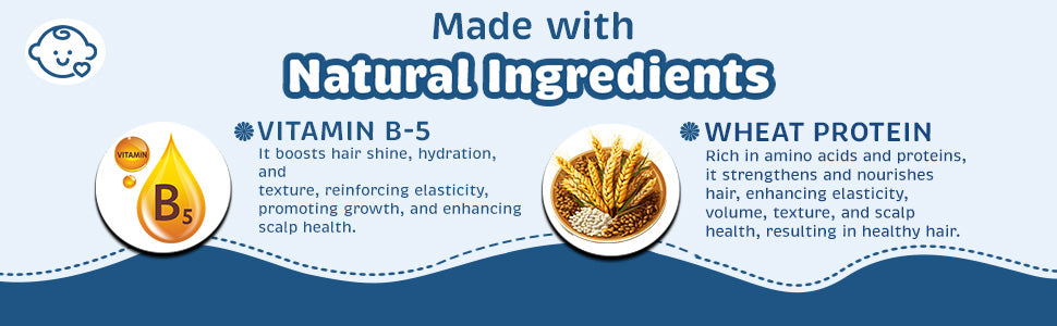 Vitamin B-5 & Wheat Protein are my major ingredients sourced naturally from plants. I'm designed to deep clean while also retaining the natural moisture of your baby's scalp. I adore babies and am aware that their sensitive scalps require special attention.