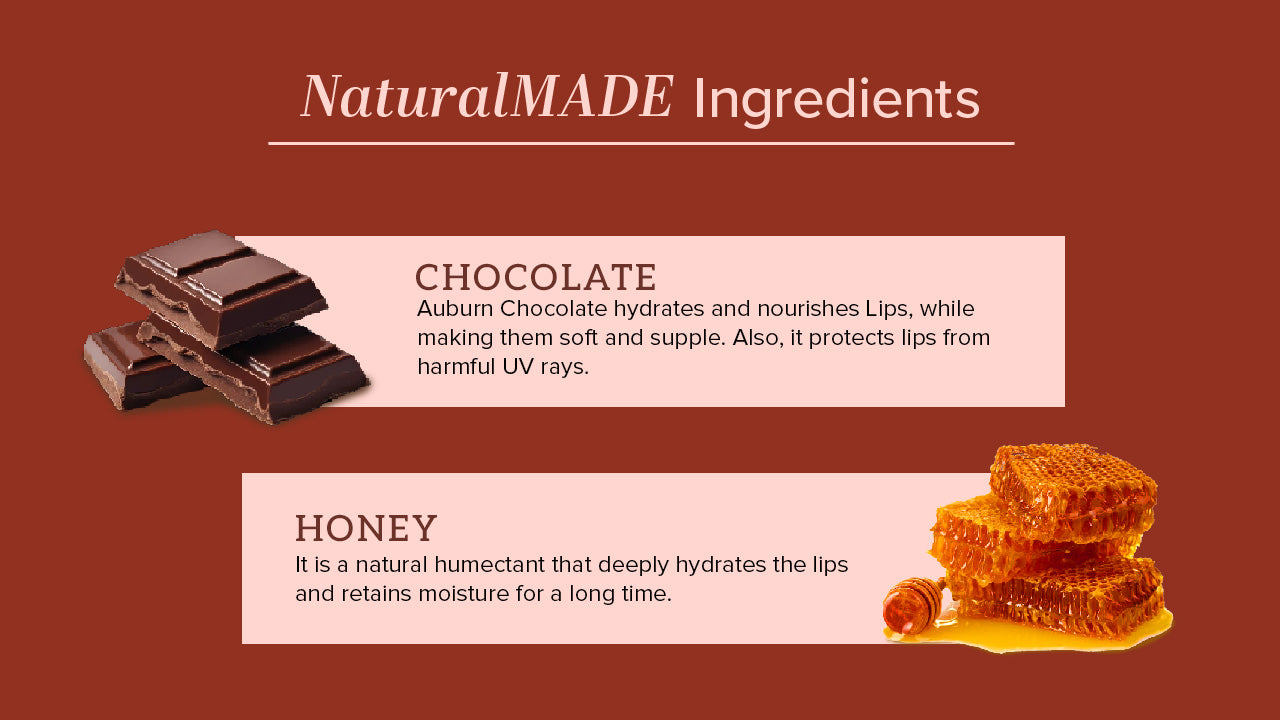 Khadi Natural Chocolate lipbalm protect your lips from harmful UV rays and harsh external weather and provides nourishment to them. It is blend of shea butter and beeswax which leaves your lips smooth and supple. Regular use of chocolate lipbalm results in luscious, soft and moisturized lips.