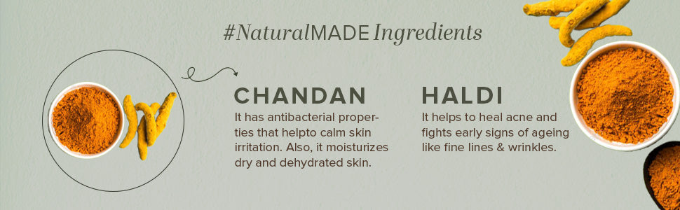 Khadi Natural Chandan Haldi Soap has anti-bacterial and anti-fungal properties that help keep skin infection at the bay. Rich in Vitamin E, this soap moisturizes and revitalizes the skin, making it soft and supple. Also, this soap helps in restoring the natural skin glow. This soap helps heal acne while deeply cleansing the pores. It is suitable for all skin types.