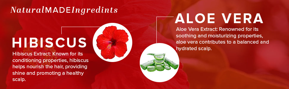 Introducing our Hibiscus & Aloe Vera Hair Oil, a potent blend enriched with Hibiscus Flower and Aloe Vera for vibrant, healthy hair. Formulated without any toxic chemicals or preservatives, our hair oil is a pure infusion of nature's goodness. Free from parabens, silicones, sulfates, colorants, salt, and artificial fragrances, it delivers gentle yet effective care for your locks.It nurtures hair from root to tip, promoting resilience and shine. With Hibiscus boosting growth and conditioning and Aloe Vera deeply hydrating and soothing, experience nature's care for visibly revitalized hair.