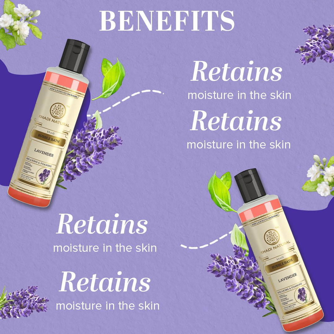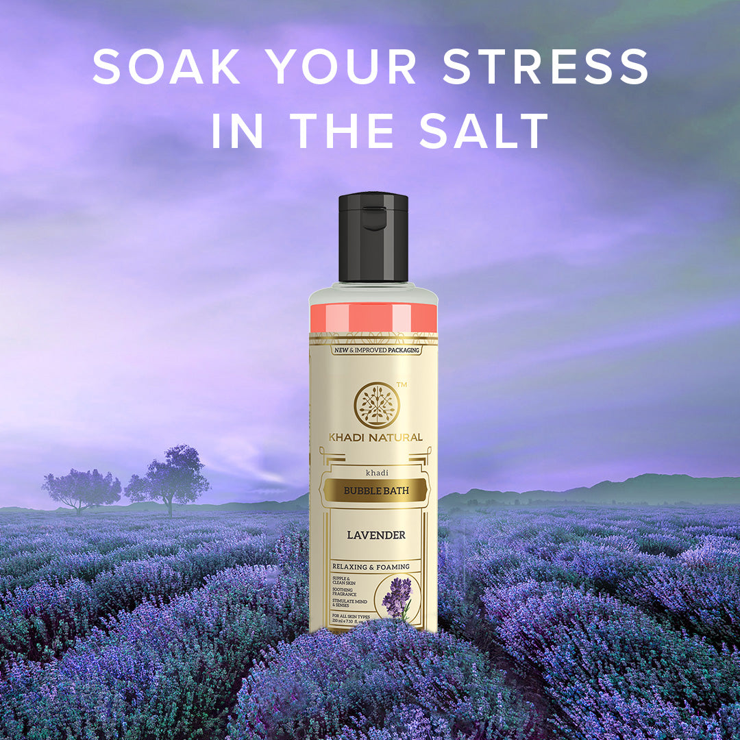 Khadi Natural Lavender Bubble Bath has excellent relaxing properties that revitalize your mind, body, and soul with its soothing fragrance. It generously creates a rich foam that gently cleanses your skin while making it soft and supple.