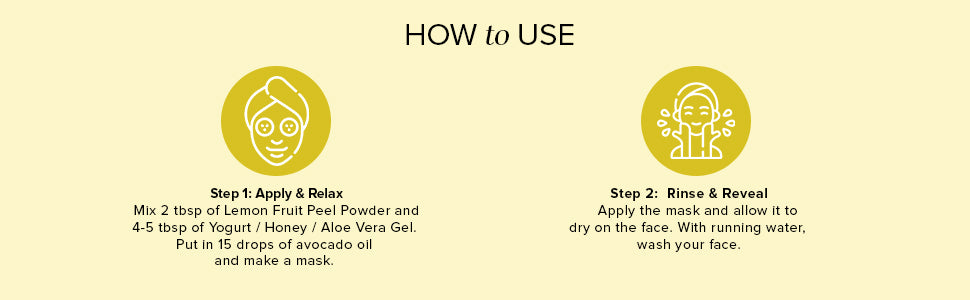 Organic Lemon Fruit Peel Powder is rich source of Vitamin C and works best on both skin and hair. The anti-bacterial and anti-microbial properties helps in treating acne and oily skin. Removes dark spots, scars and blemishes. Boosts collagen production for hair growth. Tighten and unclog hair follicles, curbs hair fall.