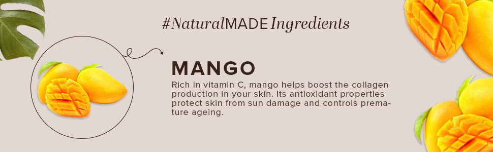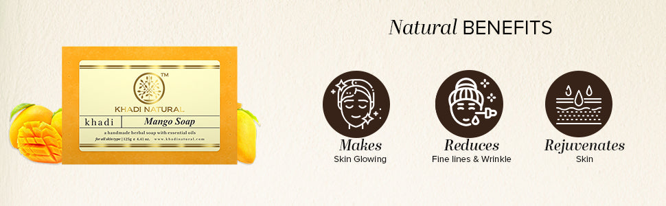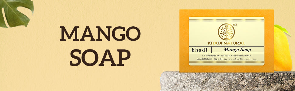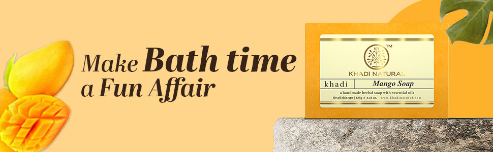 Handcrafted with precious natural ingredients including mangoes, Khadi Natural Mango Soap will make your morning bath time a fun affair. A natural source of vitamin A, this soap helps reduce the appearance of ageing signs such as fine lines and wrinkles, while helping to balance skin's sebum production. It has exfoliation properties that remove dead skin cells and keep the skin beautiful and radiant. Regular usage of this soap can keep the skin protected from sun's harmful rays. This soap works wonders on dry and dehydrated skin and lends a natural glow to the skin. It has a soothing and calming aroma that will help to relax your mind, body and soul.