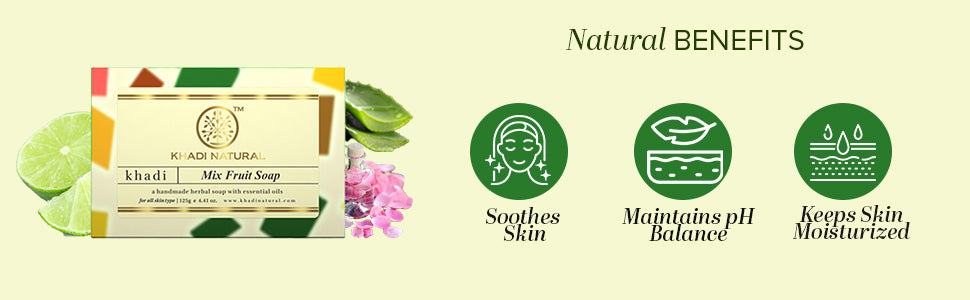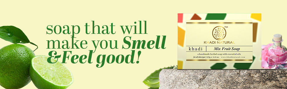 Give your skin fruity goodness with Khadi Natural Mix Fruit Soap. This soap is packed with the goodness of mixed fruits which helps to clean your skin and soothe your senses. It is perfectly blended with the richness of coconut oil and glycerin which helps to deeply moisturize the skin. Besides, this soap helps to hydrate the skin. The soothing fragrance of this soap helps to soothe and relax the mind.
