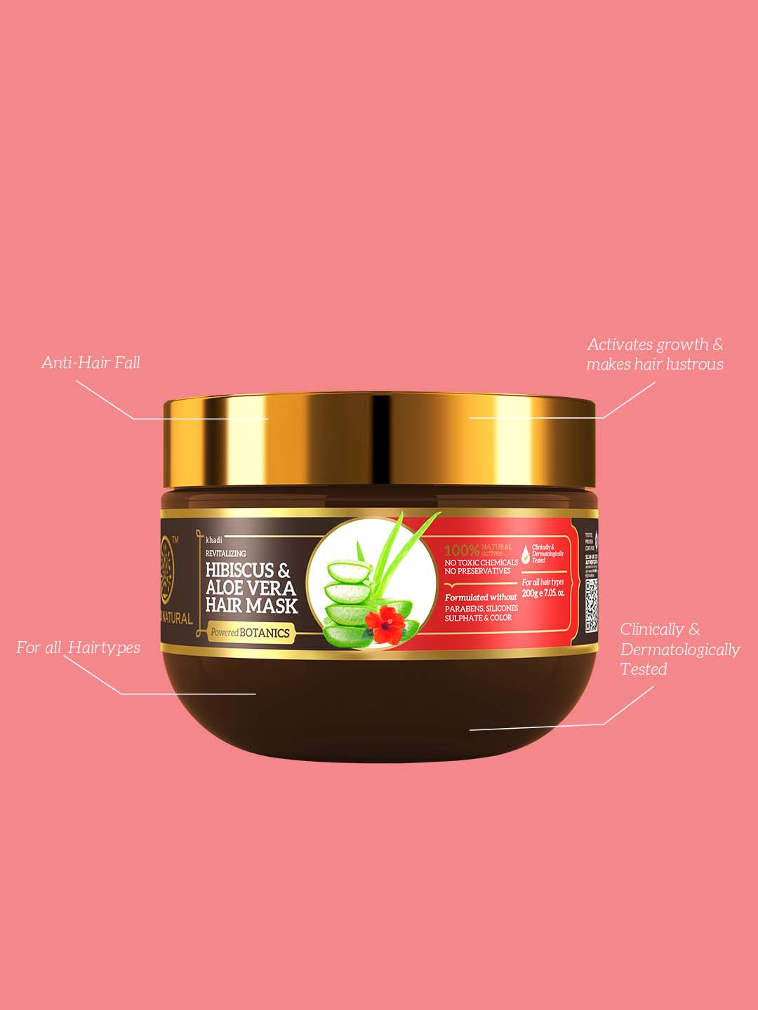Khadi Natural Hibiscus & Aloe Vera Hair Mask - SLS, Parabens & Color Free - 200gm