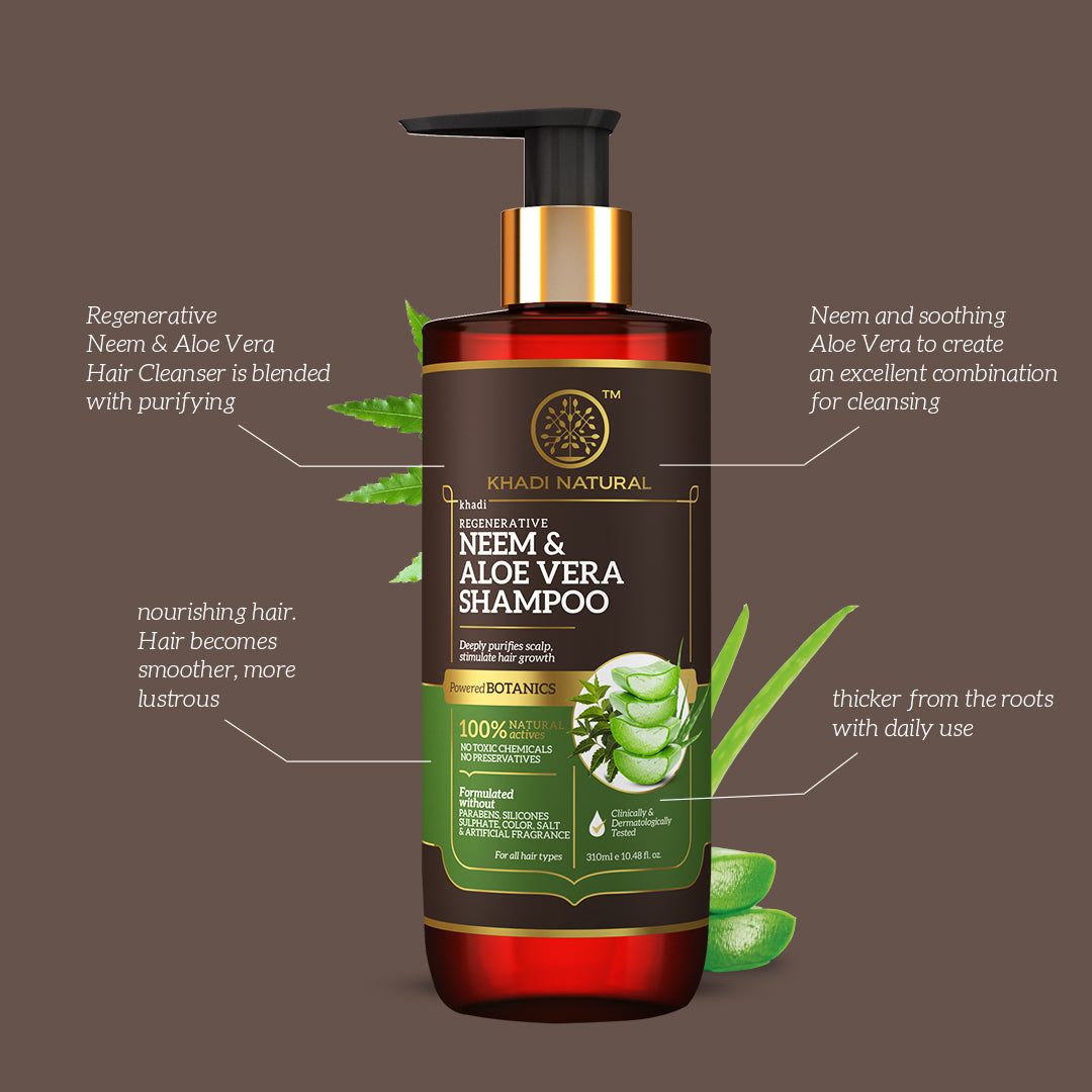 Khadi Natural Neem & Aloe Vera Hair Cleanser - Paraben, Silicones, Sulphate, Color, Salt & Artificial Fragrance Free - 310ml