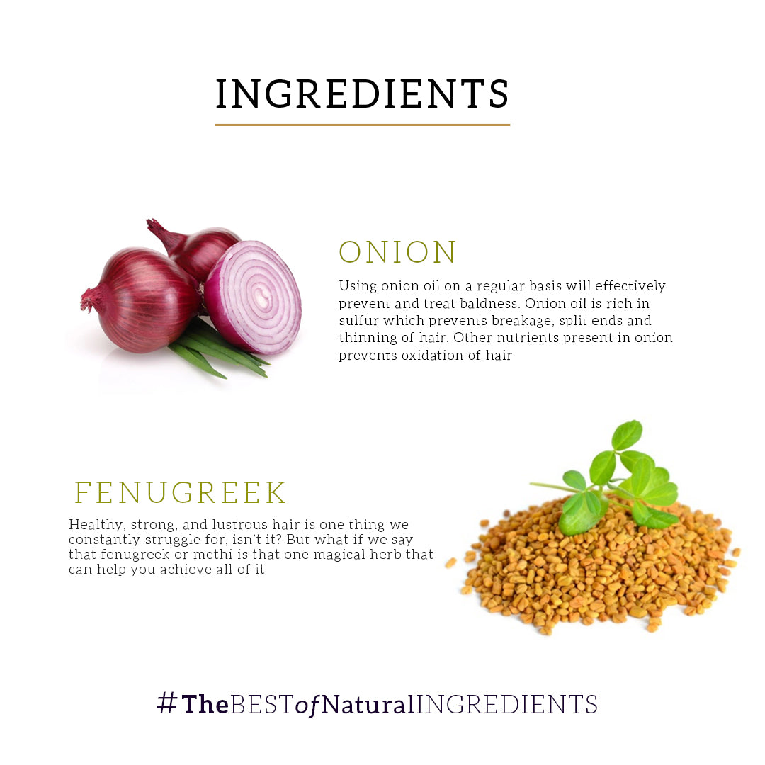 Nourishing Onion & Fenugreek Hair Oil strengthens hair follicles and roots, repairing cuticles to prevent breakage. Packed with essential nutrients, it's a magic potion for every drop, nurturing both scalp and hair. Crafted without TOXIC CHEMICALS, PRESERVATIVES, MINERAL OIL, PARABENS, SILICONES, SULPHATE, COLOR, SALT & ARTIFICIAL FRAGRANCE, ensuring purity and effectiveness.Experience the power of pure COLD PRESSED OIL BLEND for healthier, more vibrant hair.