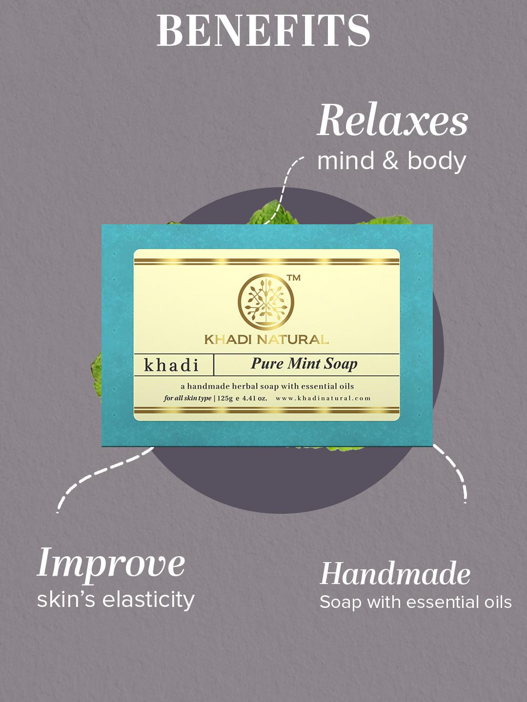 Cleanse, tone and nourish your skin with natural Khadi Herbal soaps.Khadi Herbal Mint Soap is Powerful yet skin friendly with herbal and antiseptic properties.It has Peppermint incorporated in mild soap base that takes out heat from the skin while keeping it cool even after a refreshing shower.