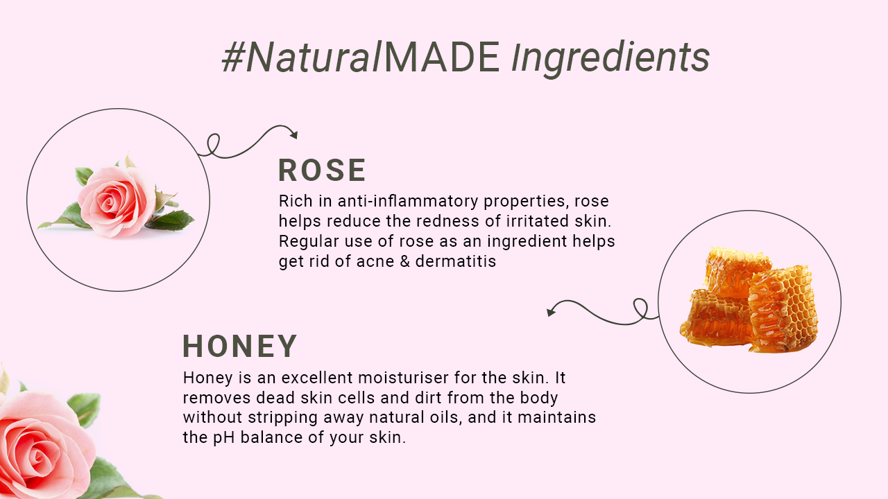 Khadi Natural Rose & Honey Body Wash is a gentle cleanser that provides freshness and moisturization to your skin. This body wash creates a rich, bubbly lather with a soothing fragrance. It has the goodness of rose and honey that makes skin soft, smooth, and hydrated.
