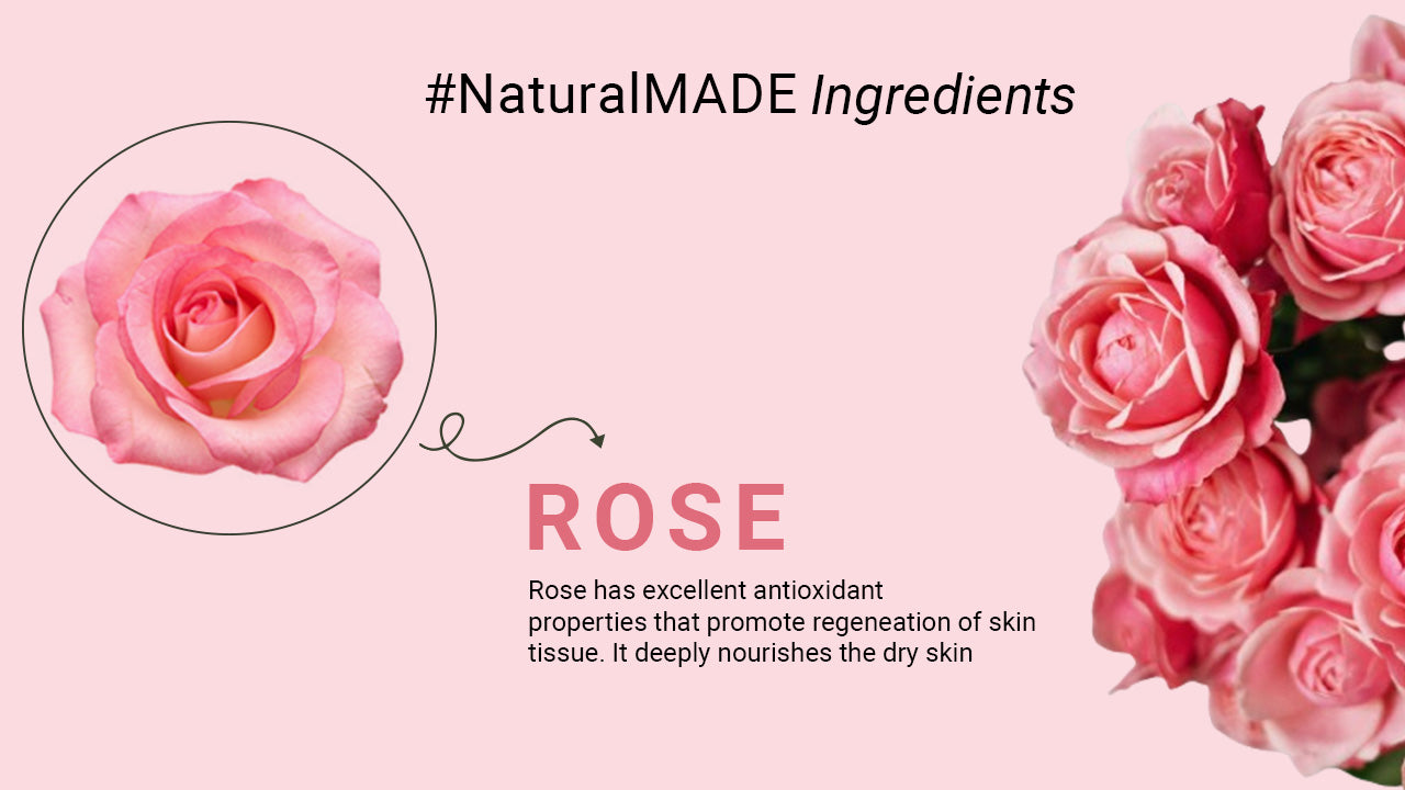 Khadi Natural Rose Water Soap has the goodness of rose petals water and glycerin that keeps your skin smelling heavenly along with keeping it soft and supple. It has mild antiseptic properties that keep skin smooth and velvety.