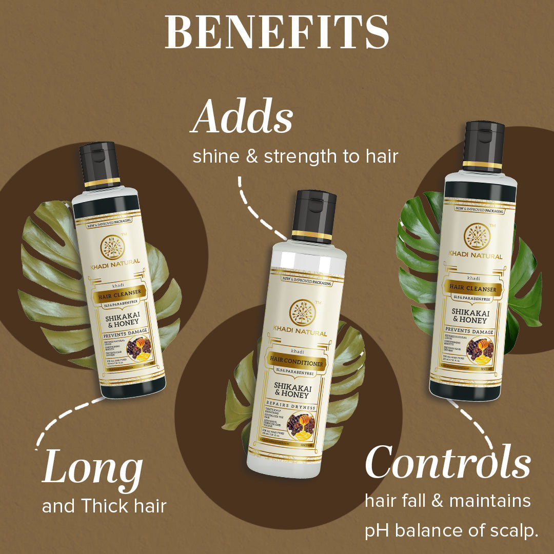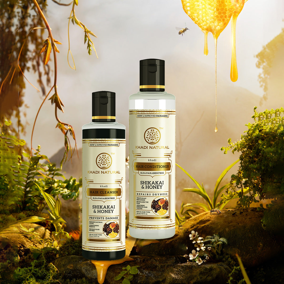 Khadi Natural Shikakai & Honey Cleanser & Conditioner SLS & Paraben Free Combo - 210ml Each Sale