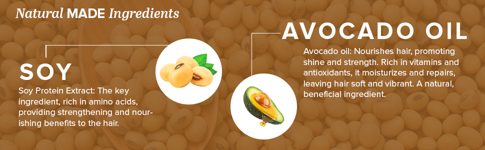 Benefit from the potent conditioning action of Soy Protein, which reduces flakiness and enhances overall hair health. Enriched with omega fatty acids and vitamin E, it deeply nourishes damaged, dry, and color-treated hair, ensuring optimal moisture and vitality. Formulated without harmful toxins like mineral oil, silicones, or synthetic fragrances, our hair mask offers a natural solution for revitalizing your hair, leaving it looking and feeling its absolute best.