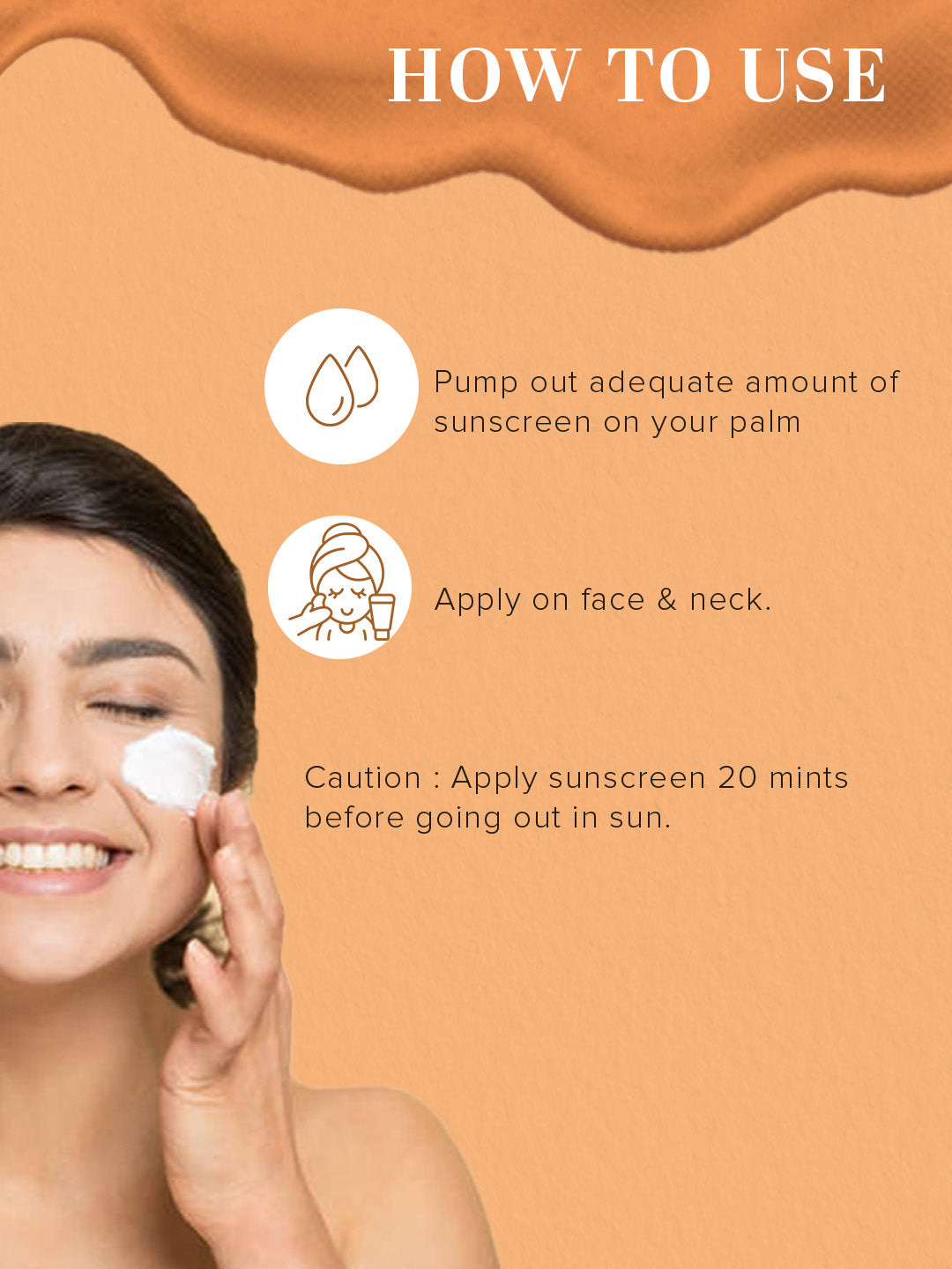Sunscreen Lotion SPF 50 keeps your skin hydrated during the day in addition to blocking UVA & UVB rays. This sunscreen is infused with the most potent natural ingredients, quickly plunges into your skin, and helps your skin to breathe and glow naturally. With high-performance broad-spectrum protection from the sun, this non-sticky formula feels light on your skin and also protects the skin from damaging pollutants during the day. UV Shields to Slow UV Induced Skin Aging UVB Shields to Reduce Wrinkling and other Harmful Sun Effects. Chamomile Moisturizer Protects your Skin From Free Radical Damage a Chief Contributor to Premature Aging, Hence Help Retaining your Youthful Charm for Long.
