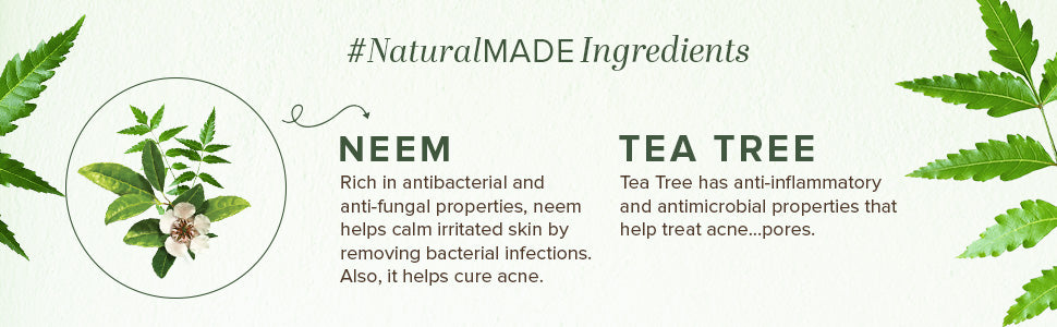Neem & Tea Tree Face Wash is crafted to balance skin tone, minimize pores, and eliminate impurities with its refreshing lather. Free from harmful chemicals like SLS & Paraben, this formula is gentle yet effective. Enriched with powerful botanical extracts, it shields the skin from damage caused by free radicals, providing a soothing cleanse for all skin types.