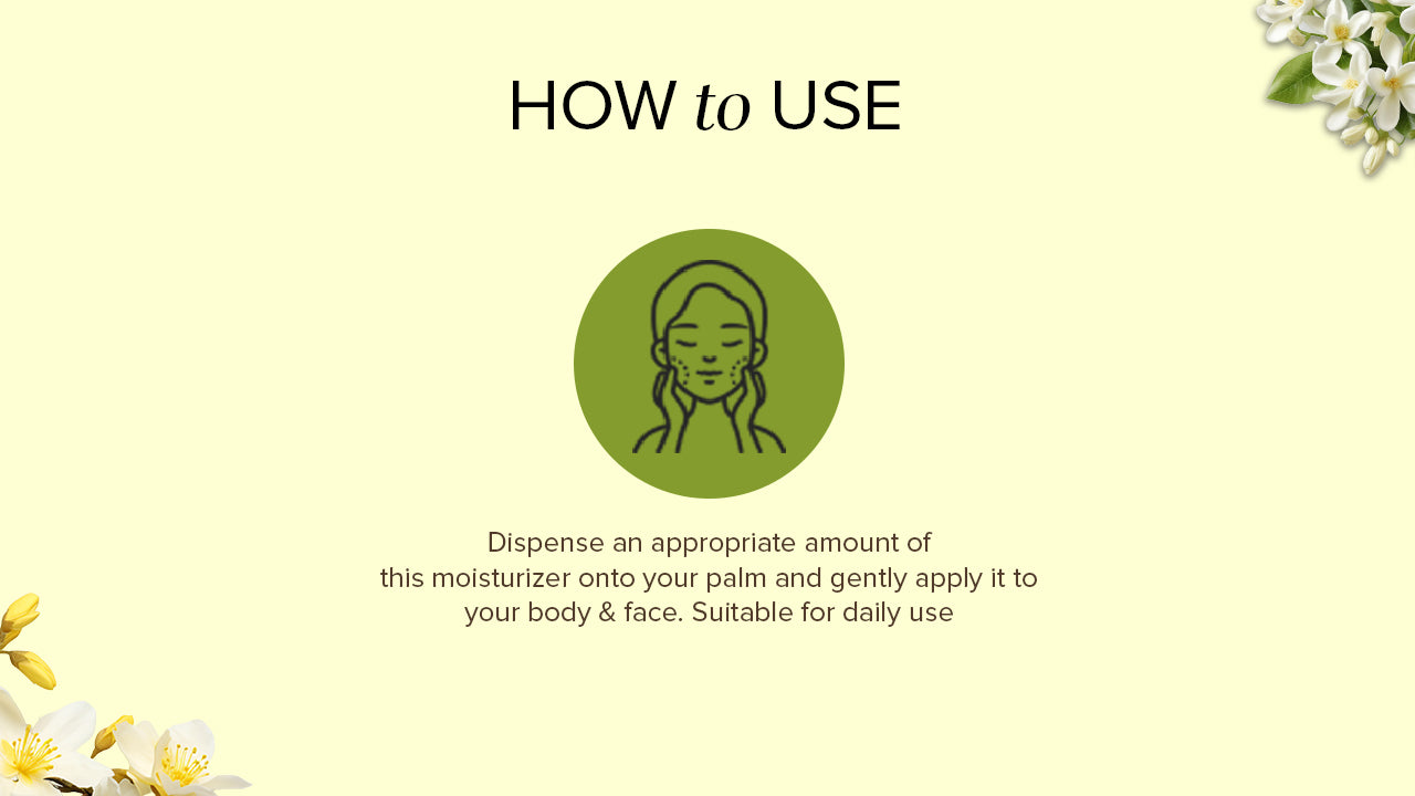 Apply Moisturizer twice a day. After splashing the face with lukewarm water, wash it with Khadi Natural Jasmine & Mogra Face Wash and moisturize the skin with Khadi Natural Jasmine Moisturizer