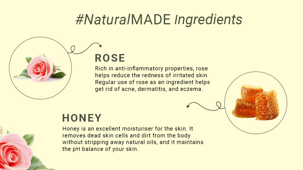 Experience the luxurious touch ofย Rose & Honey Body Wash, delicately crafted to pamper your skin and impart a fresh, radiant glow. Treat yourself to the indulgent lather of this gentle formula, enriched with honey for irresistibly soft and smooth skin. Immerse yourself in the enchanting floral fragrance of rose, combined with the comforting softness of honey, for a truly delightful bathing experience. Free from SLS and parabens, indulge in a luxurious cleansing experience that revitalizes your skin, leaving it irresistibly smooth with each use.