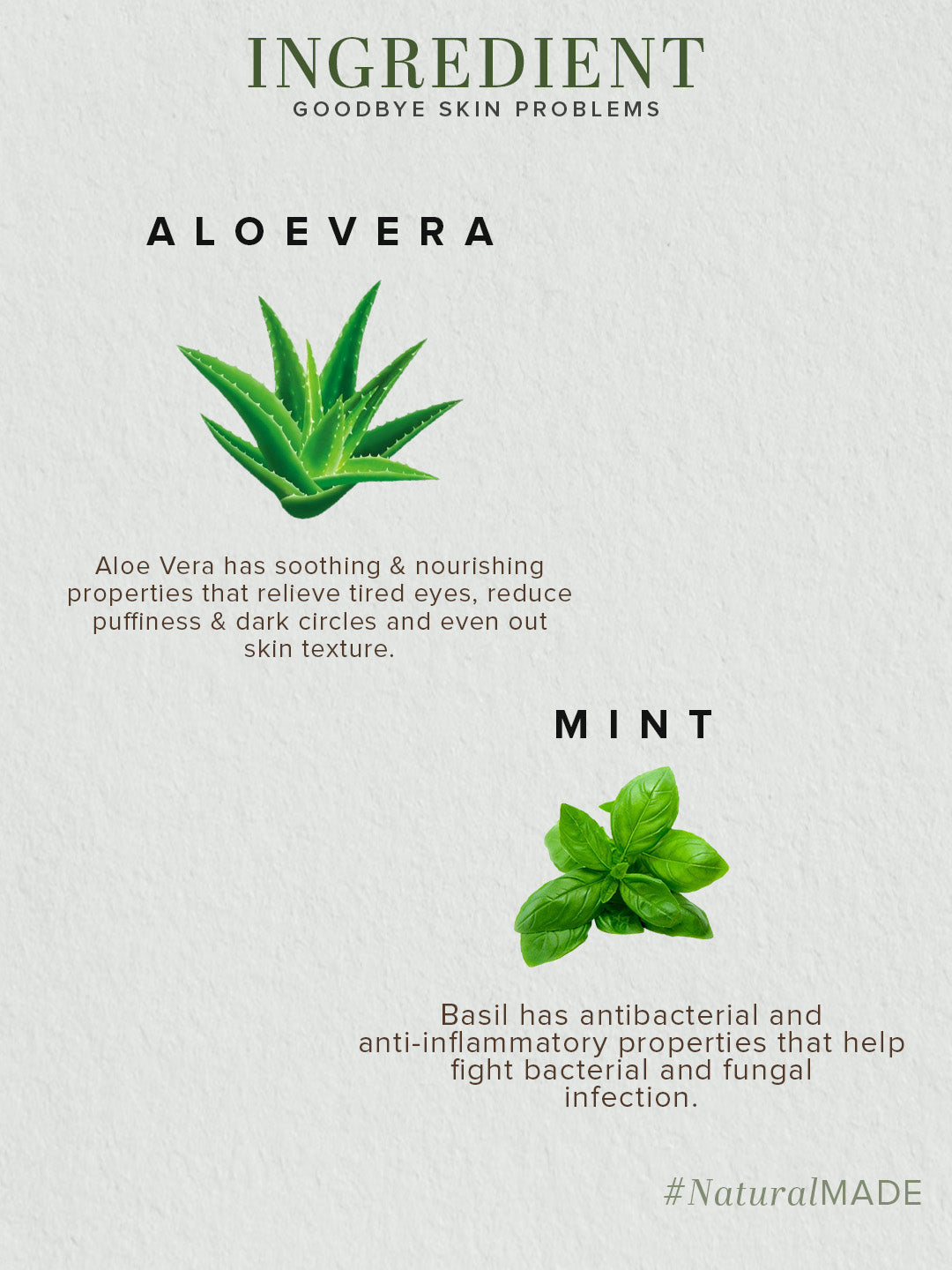 Aloe Vera, Neem & Basil Facial Massage Gel stimulates wound healing and has anti-inflammatory properties that help to minimize inflammation on the skin. Aloe vera is used to relieve the skin conditions like psoriasis, acne, and eczema. Pimples, scars, pigmentation, and blackheads may all be treated with neem. Basil eliminates dirt and imputes from clogged pores and deep cleans them.